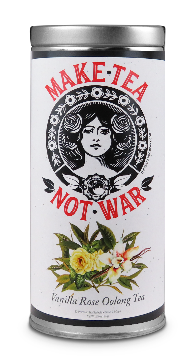 Make Tea Not War is created with luxuriously rich French Polynesian vanilla and rose petals picked from the finest blossoms. Rich in antioxidants and Vitamin C. May promote heart, hair, and skin health. Serve hot or cold. Contains caffeine.